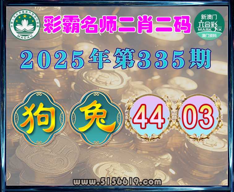 335期: ⌚《彩霸名师》二肖二码⌚【兔】【44.03】开:狗44