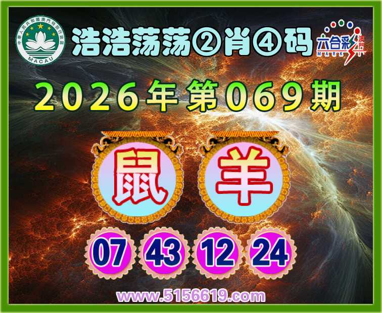 069期:〖浩浩荡荡〗 🍄②肖④码🍄【鼠】【07.43.12.24】开:羊24准上榜高手