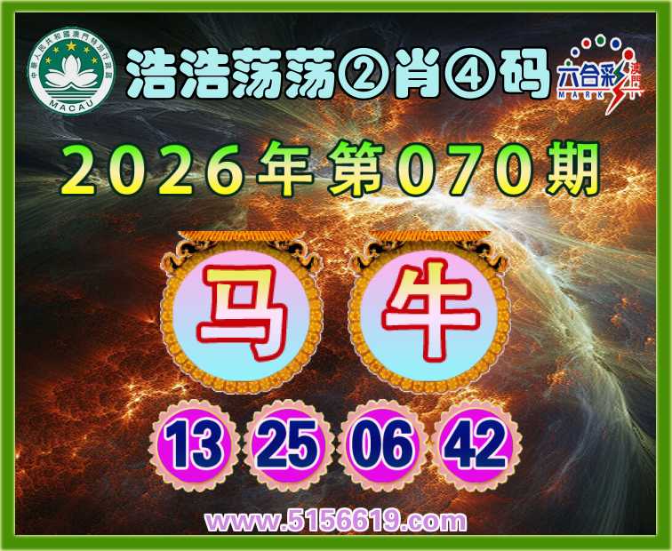 070期:〖浩浩荡荡〗 🍄②肖④码🍄【牛】【13.25.06.42】开:马25准上榜高手